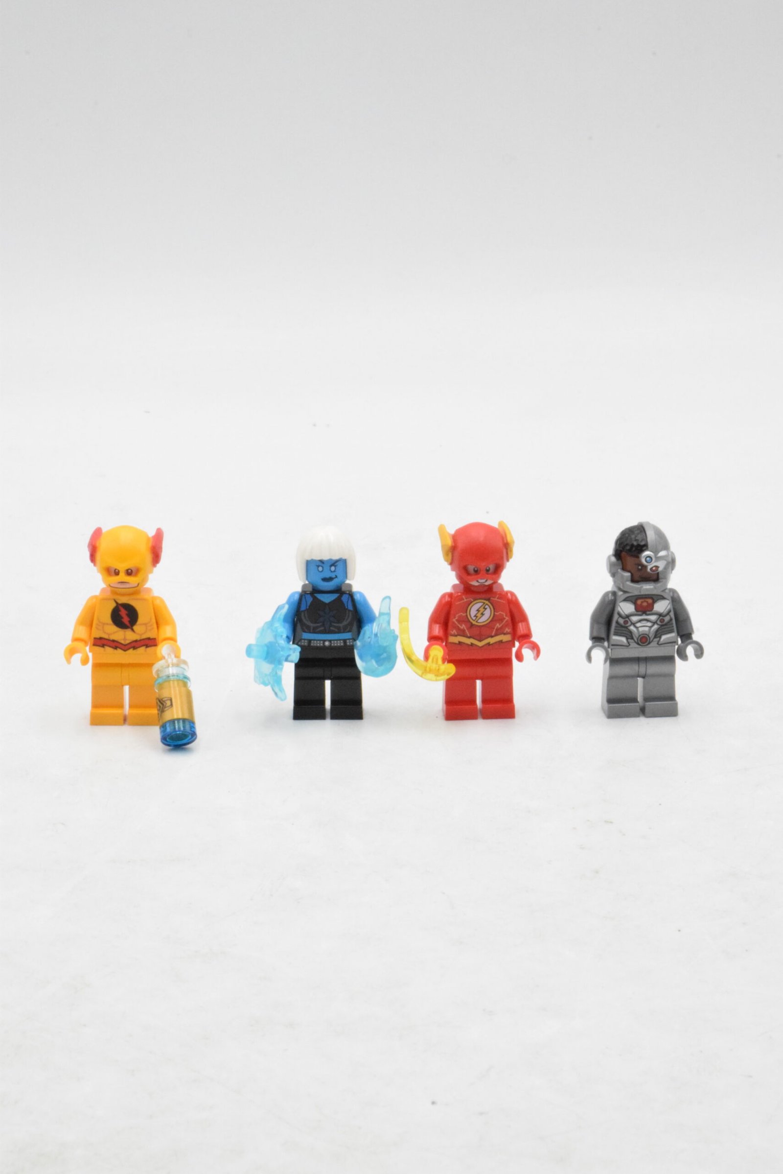 Côté personnages, l’affrontement prend vie avec The Flash (sh0473) et Reverse Flash (sh0471), soutenus par Cyborg (sh0470) face à Killer Frost (sh0472). Le combat de glace fonctionne ainsi autant comme set de jeu “poursuite” que comme petit diorama Justice League à exposer.