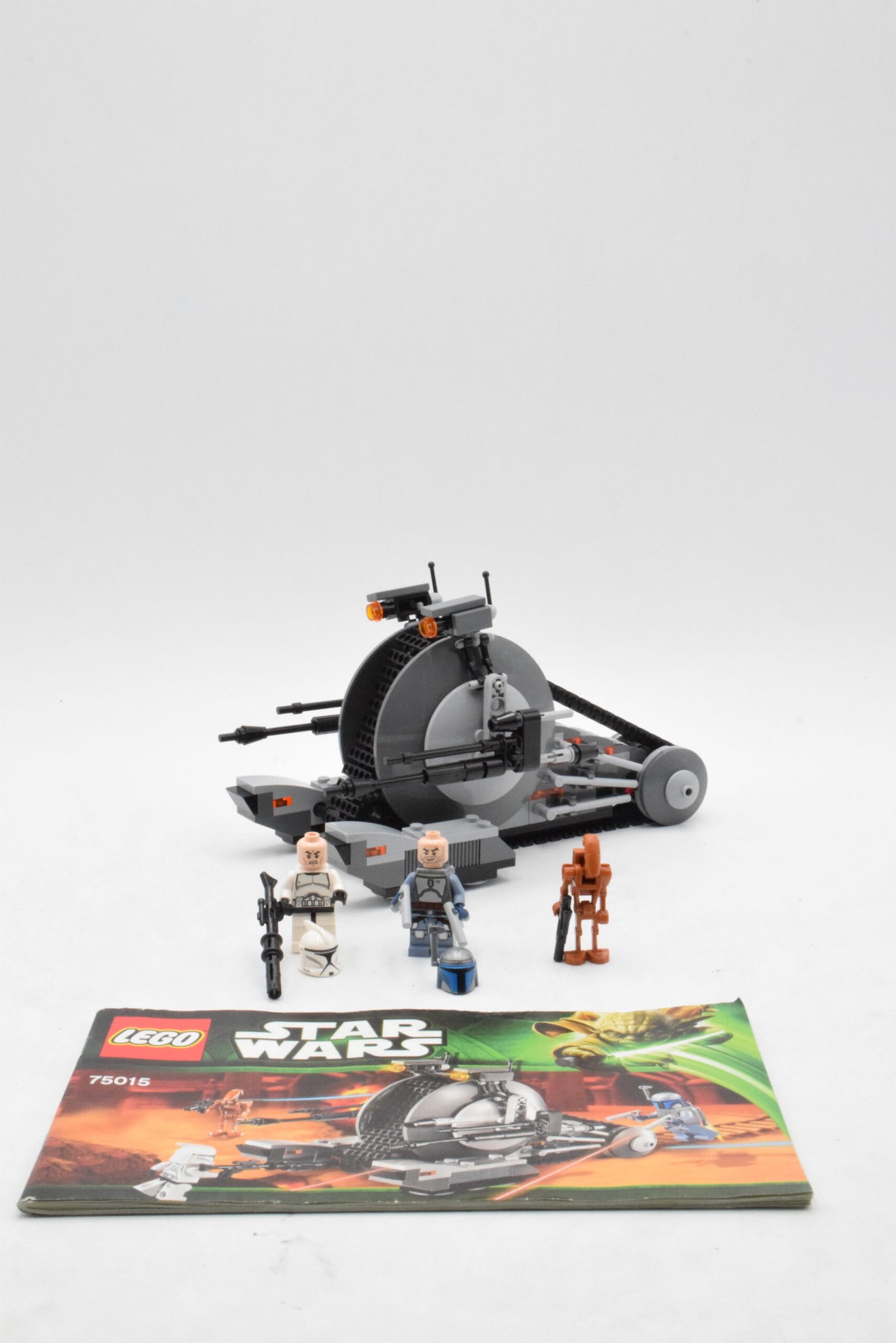 Avec le set n° 75015, on obtient un véhicule Séparatiste reconnaissable, pensé pour la mise en scène d’escarmouches : le châssis chenillé donne une vraie présence “blindé”, tandis que l’armement et les détails de surface renforcent l’identité Star Wars™ de l’Épisode II.