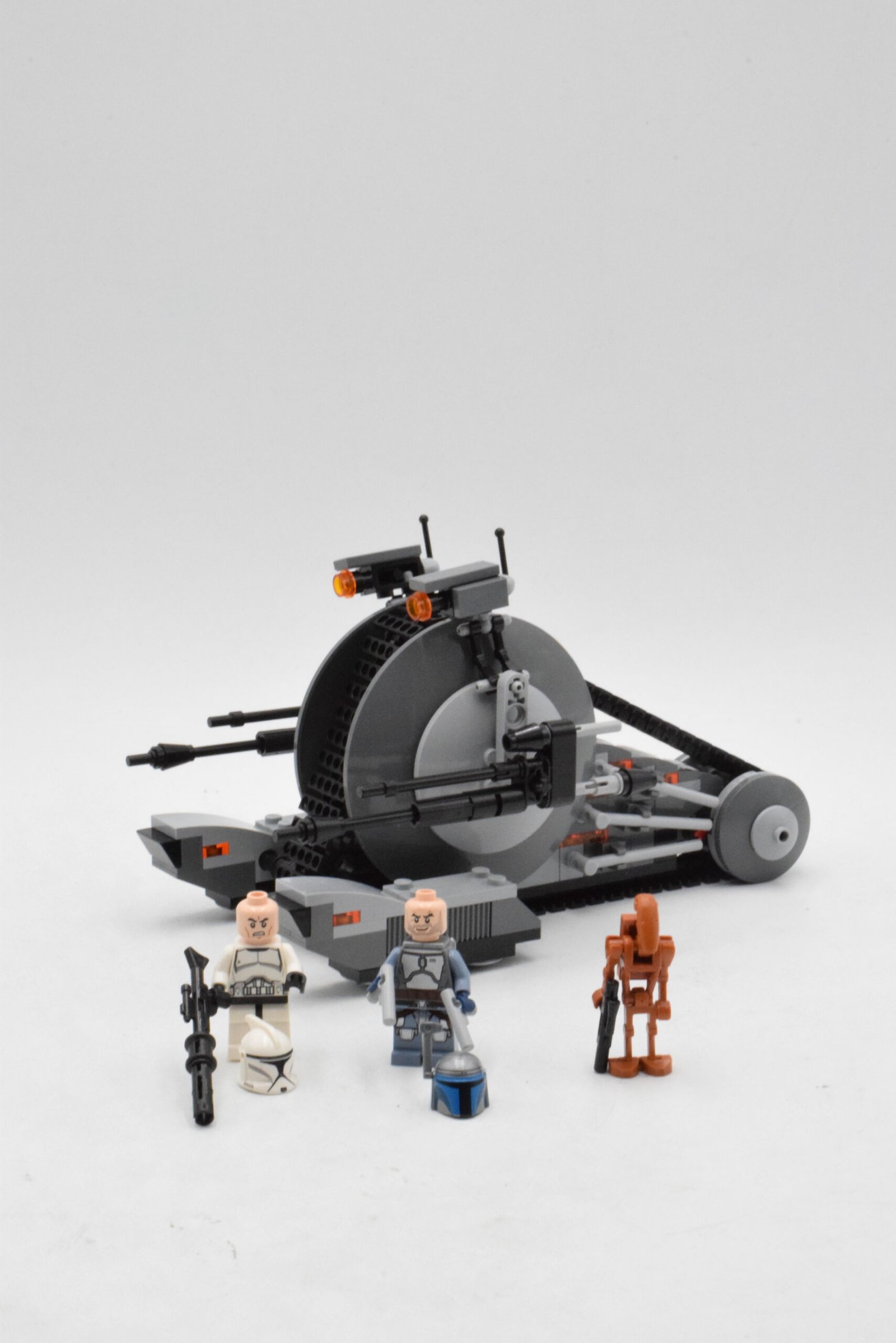 Le cœur du set repose sur sa jouabilité directe : tirs de missiles et véhicule compact, parfait pour des poursuites et affrontements rapides. Les minifigurines ajoutent une forte valeur “scène de film”, avec Jango Fett côté antagoniste et un duo Clone Trooper + droïde de combat pour multiplier les configurations d’affrontement.