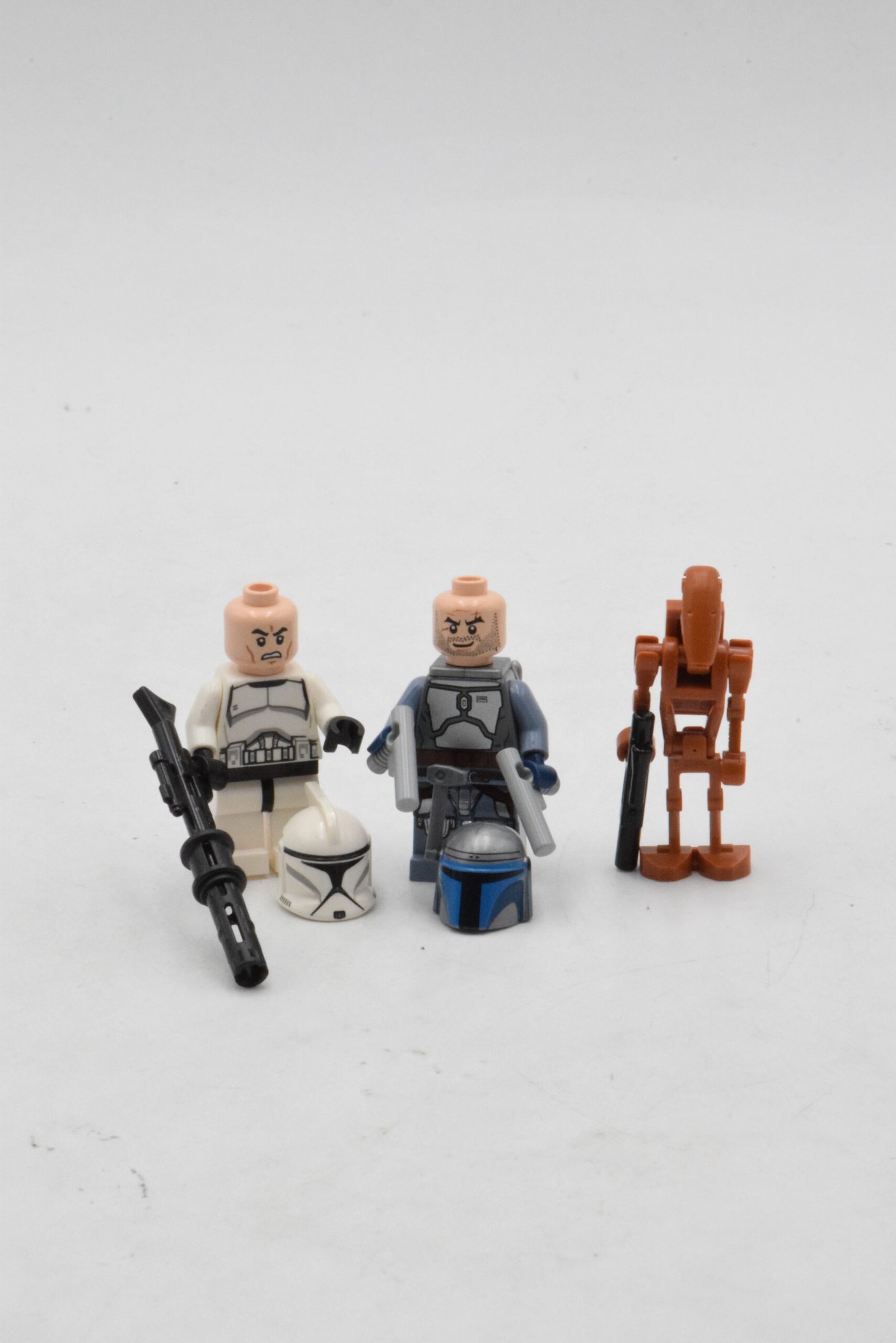 - Nombre de minifigurines : 3 — SW0442 Clone Trooper (Phase 1) – Scowl ; SW0468 Jango Fett – Light Nougat Head, Smile ; SW0467B Battle Droid – Dark Orange, Angled Arm and Straight Arm, 1 x 2 Plate on Back