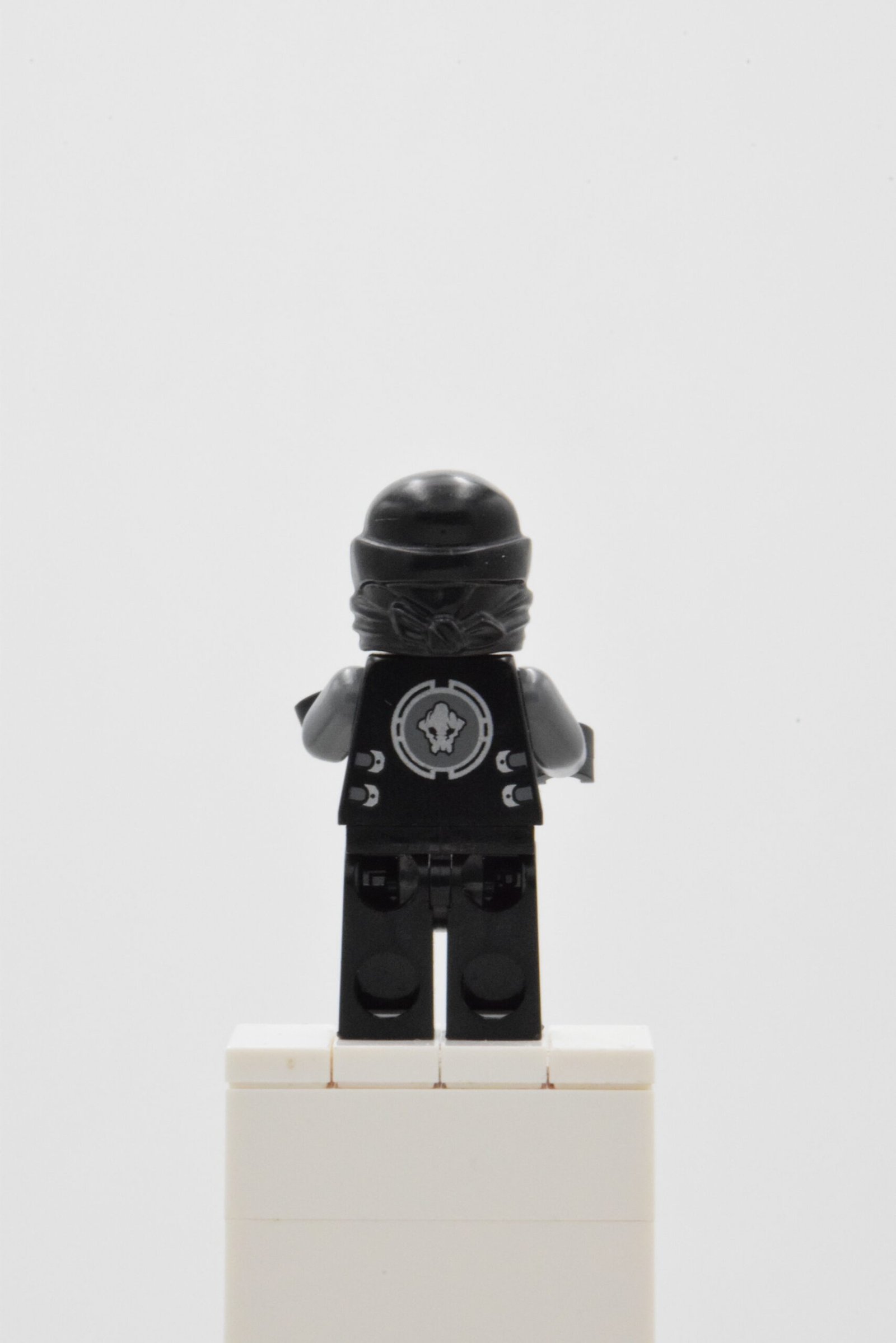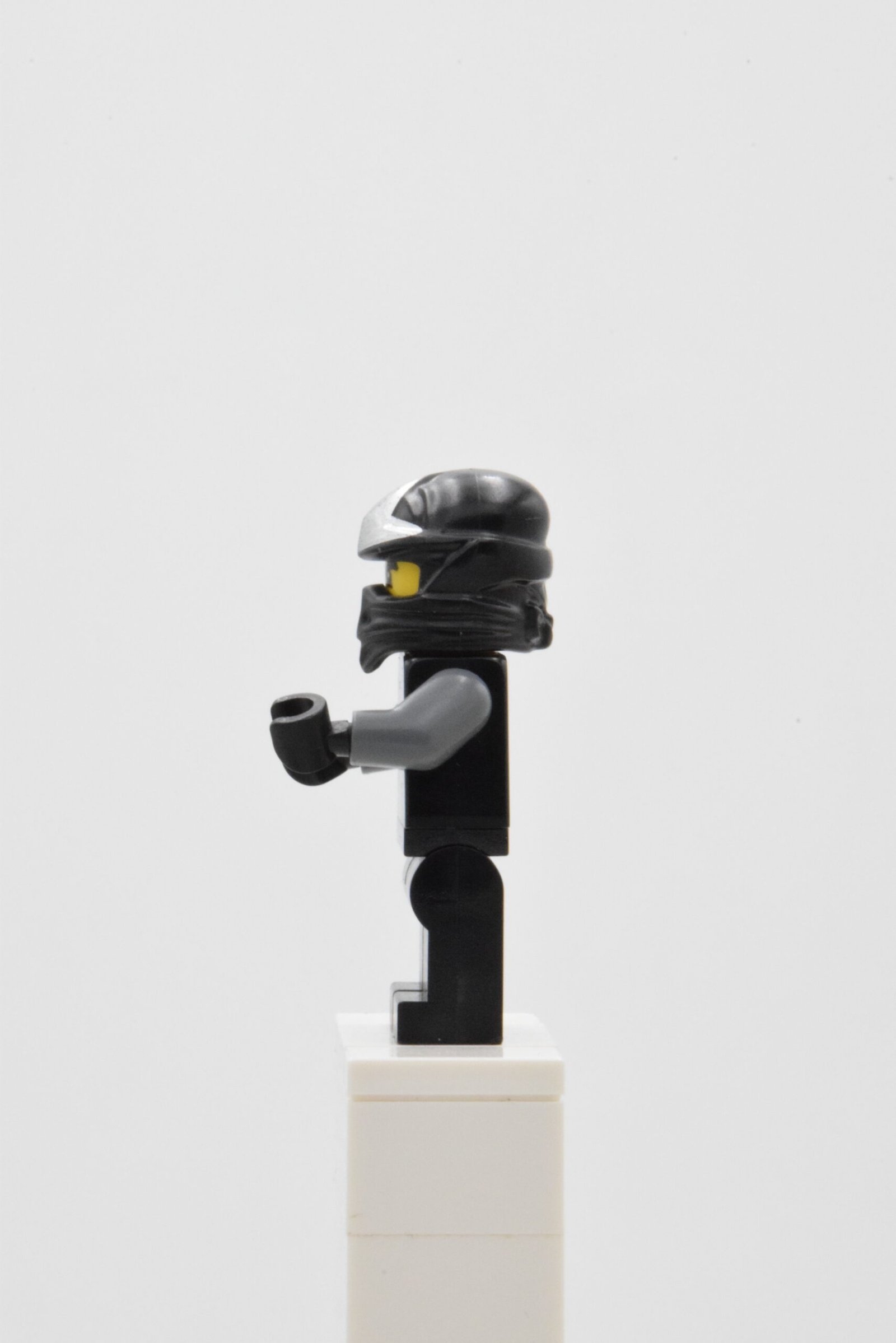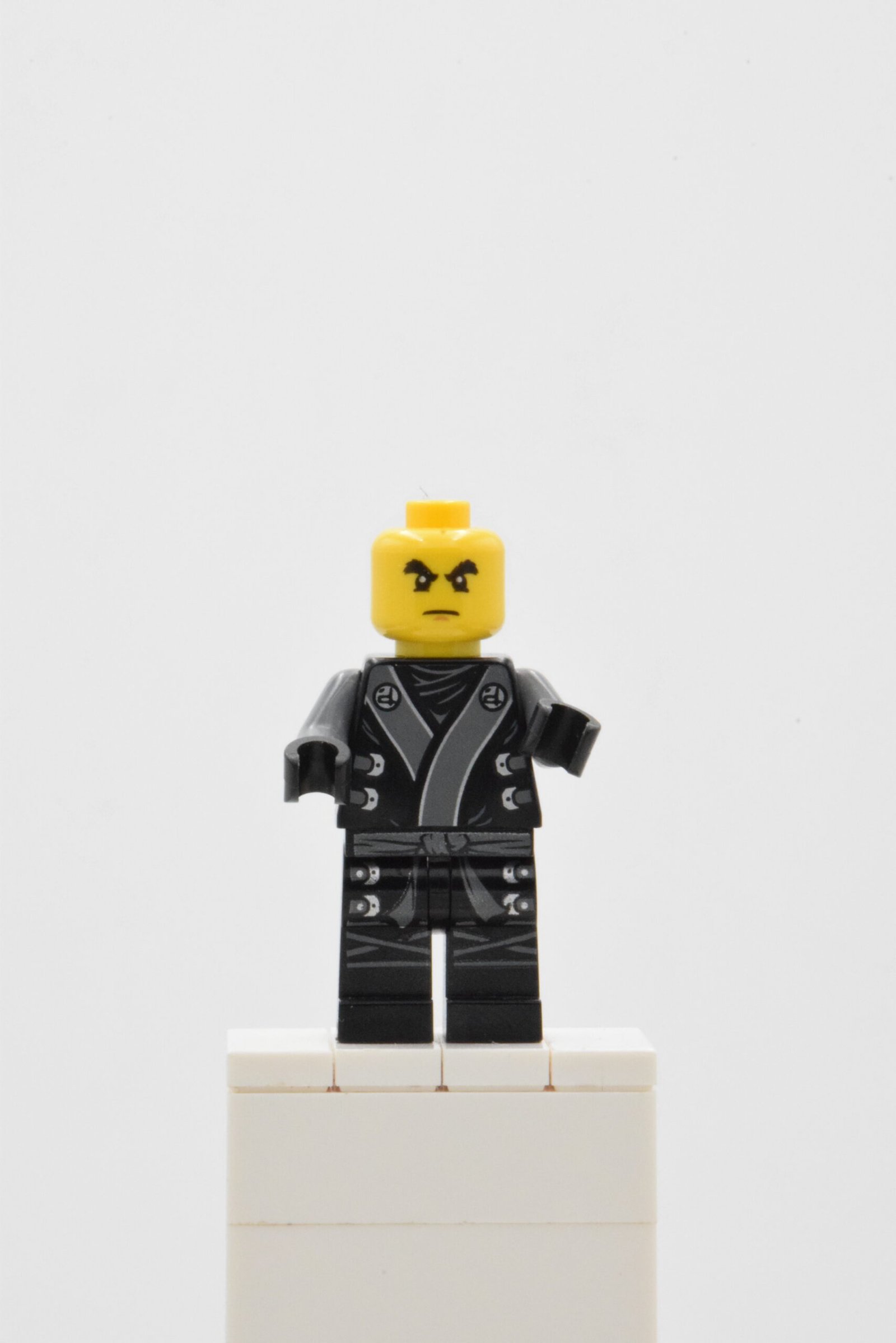 Cette version de Cole, référence njo0080, se distingue par une présentation très efficace avec un torse noir imprimé d’une robe de ninja, de sangles grises et de boucles argentées, des jambes noires décorées de genouillères et de ceinture gris foncé, une cagoule noire avec emblème argenté et un visage à expression unique qui renforcent immédiatement son allure de combattant. L’ensemble offre un rendu visuel net, cohérent et particulièrement convaincant pour l’exposition comme pour une mise en scène d’action.