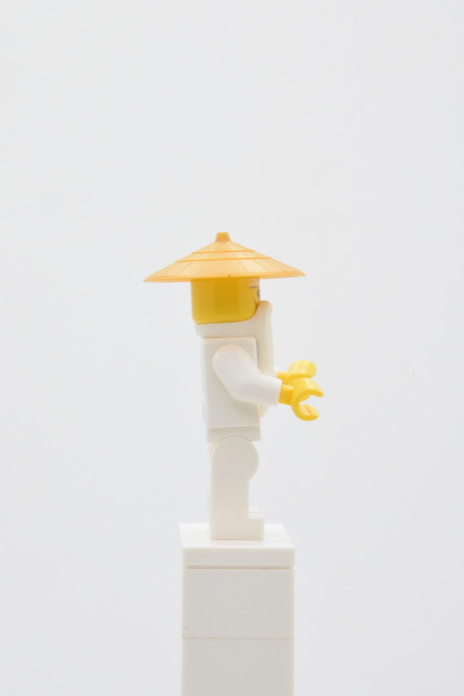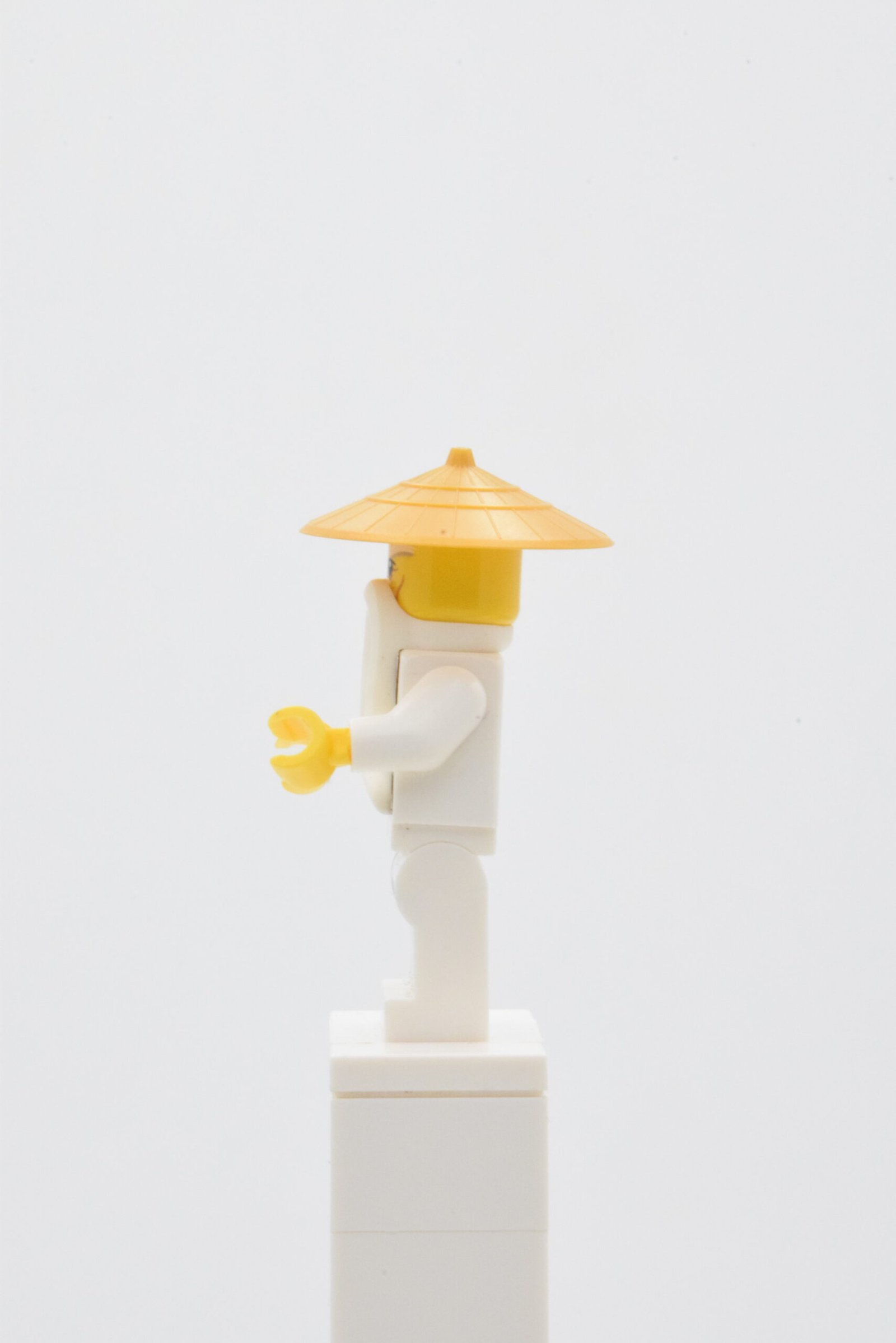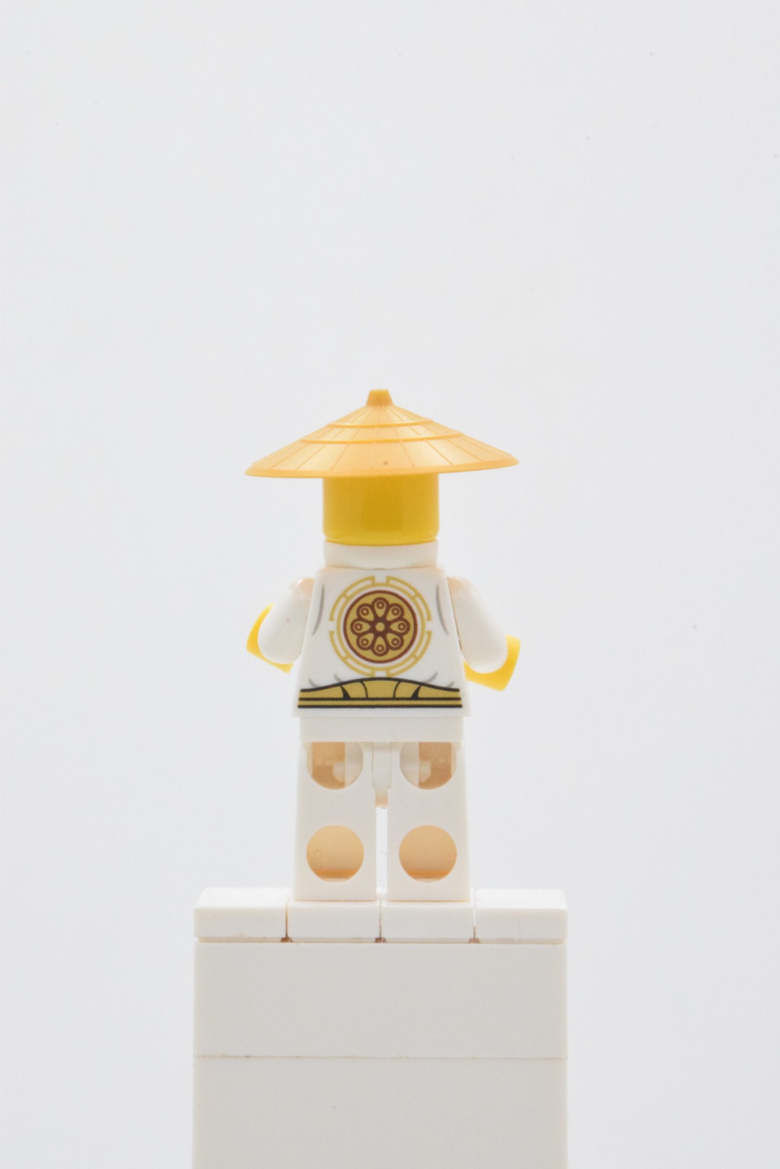 La figurine Wu Sensei, référence njo0180, se distingue par un torse blanc finement imprimé avec liserés dorés sur tunique grise, des jambes blanches décorées, une barbe blanche moulée et un chapeau conique pearl gold qui renforcent immédiatement son identité de maître. L’ensemble offre un rendu visuel très propre, calme et équilibré, avec une silhouette immédiatement lisible qui fonctionne aussi bien en vitrine que dans une scène d’entraînement ou de transmission.