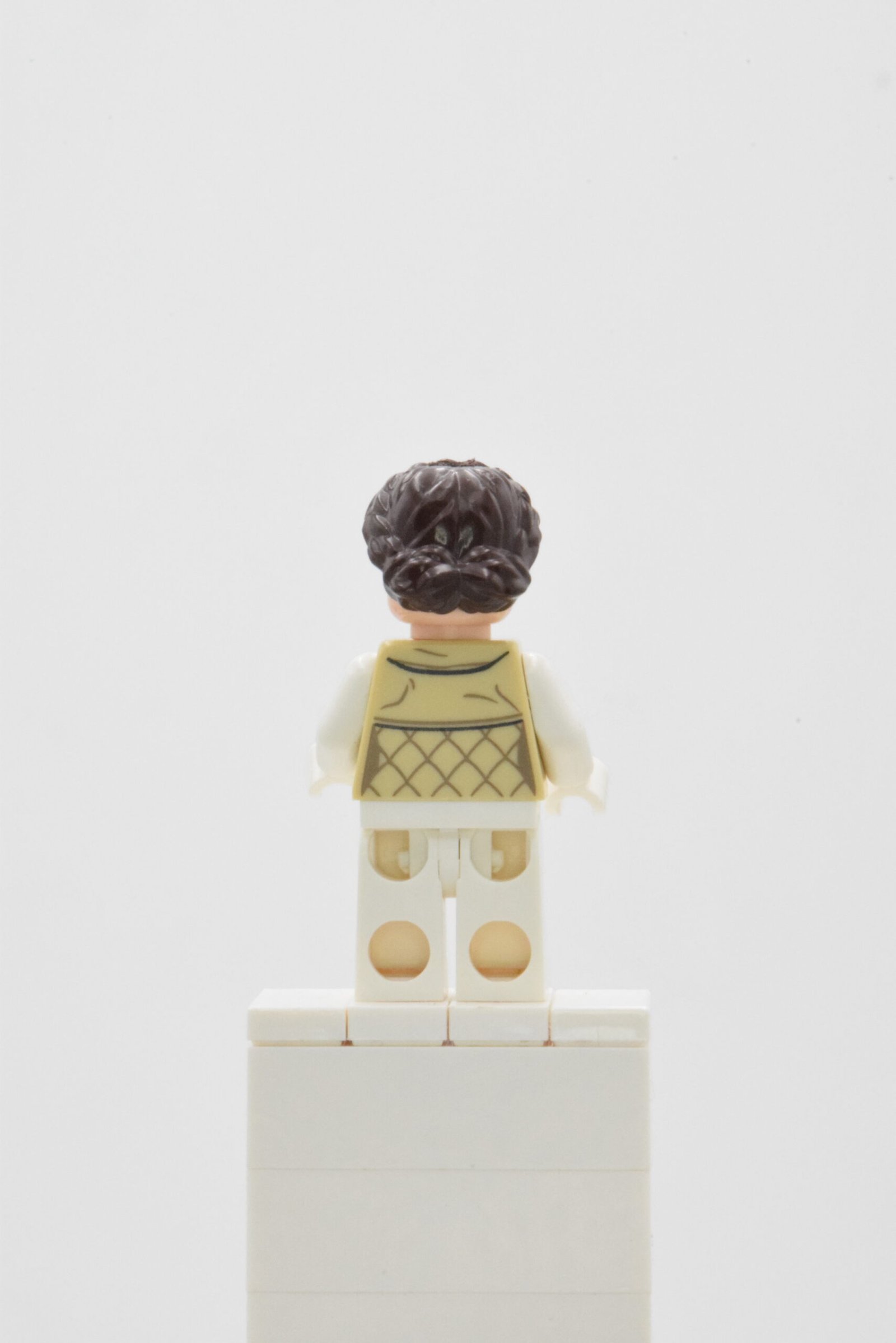Avec sw0346, LEGO propose une interprétation “Hoth” immédiatement reconnaissable grâce à une pièce de cheveux brun foncé tressée sur les côtés, qui donne une silhouette différente des versions plus classiques de Leia. La tête double face apporte de la variété en exposition et en mise en scène, tandis que le torse met l’accent sur la tenue de froid avec une veste tan imprimée et des bras blancs. Les jambes sont unies, ce qui renforce le rendu “uniforme hivernal” et facilite l’intégration dans des scènes de base rebelle ou de couloirs techniques.