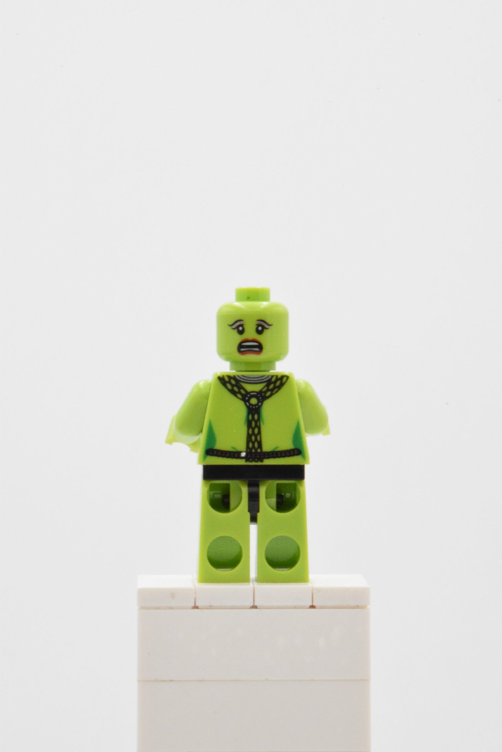 L’ensemble est particulièrement efficace en diorama, car la figurine reste lisible même au milieu d’autres personnages du Palais de Jabba : la palette lime/black et l’impression de la coiffe créent une silhouette immédiatement reconnaissable.