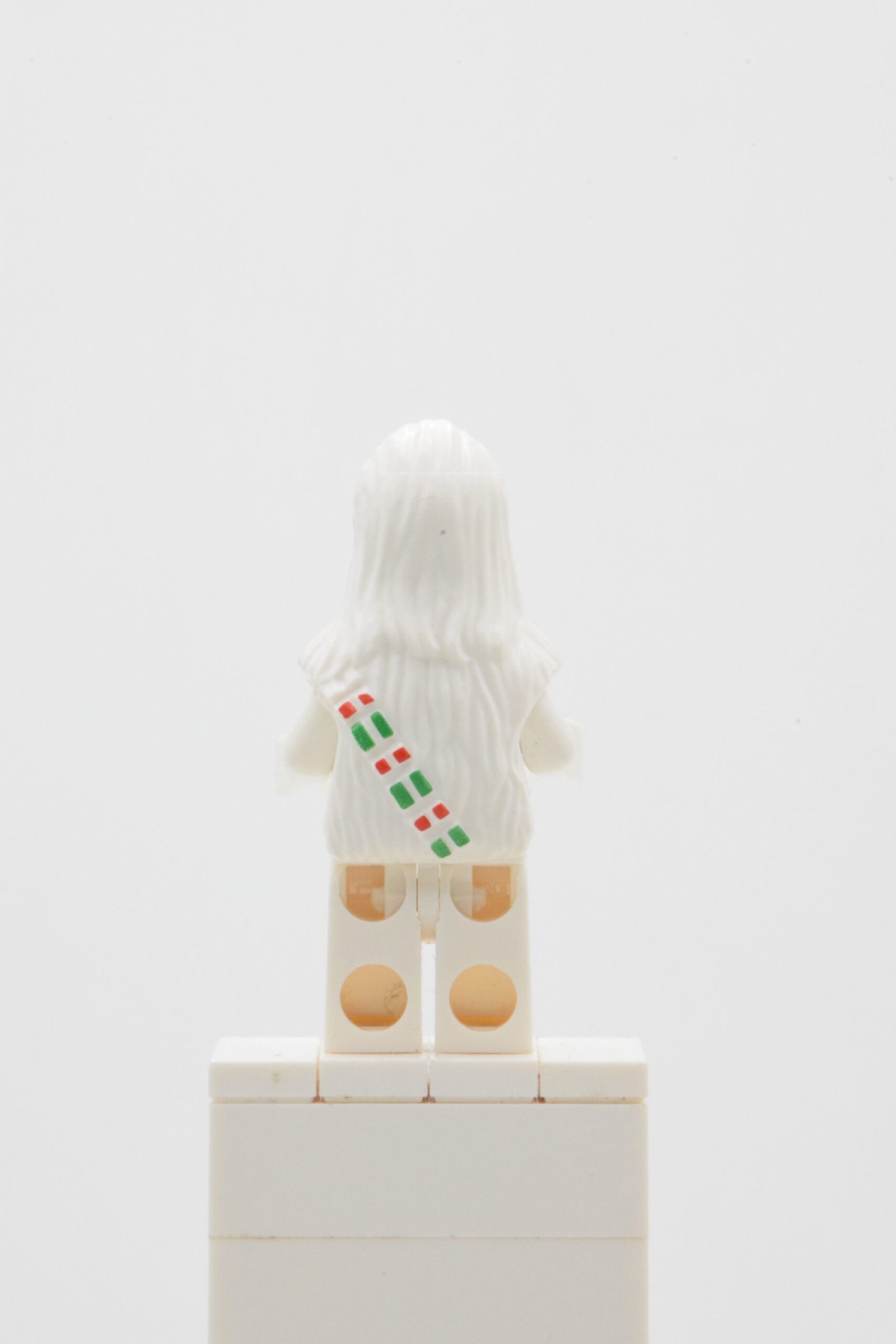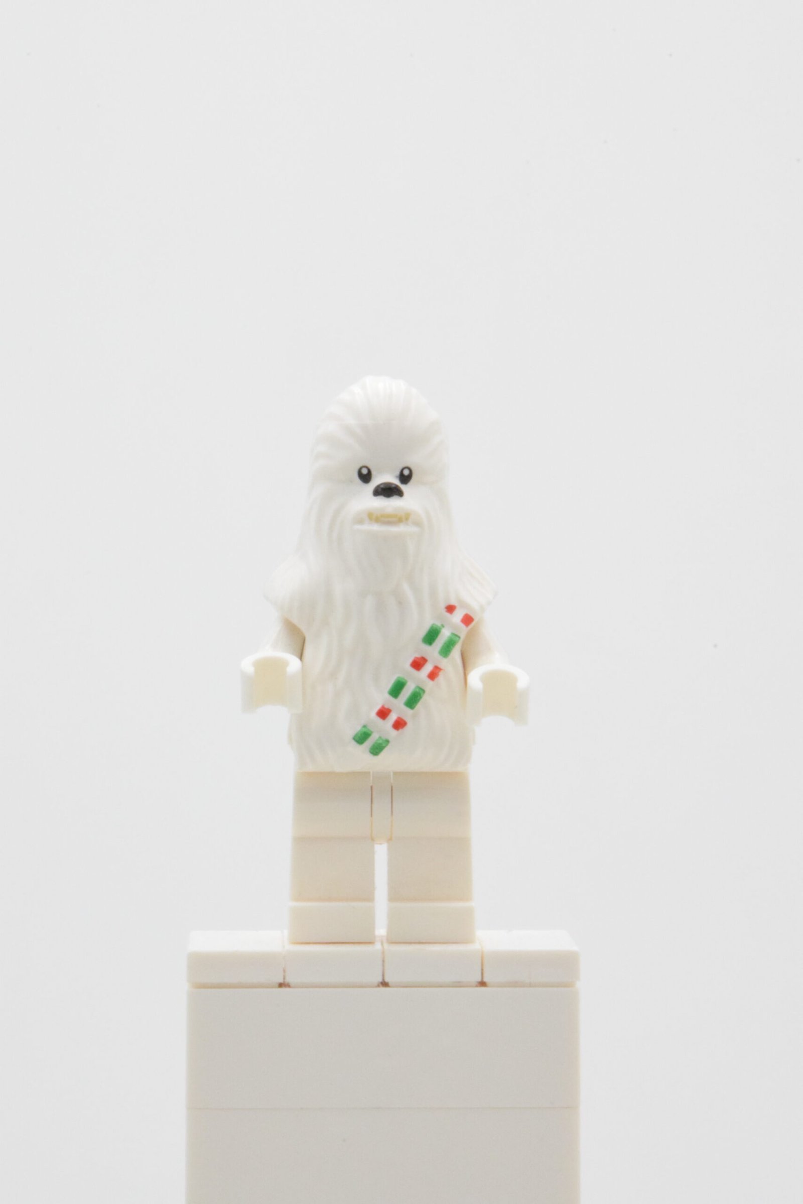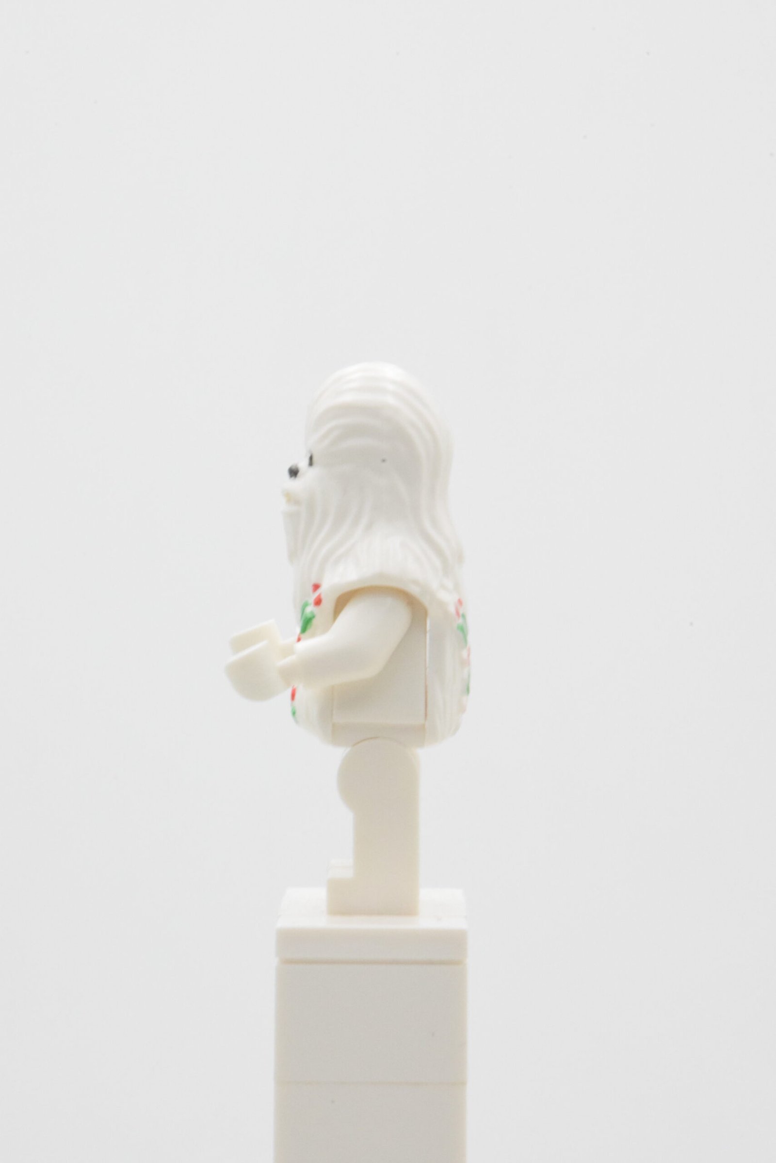 Snow Chewbacca, sw0763 séduit par une silhouette immédiatement fidèle au personnage, avec un haut moulé texturé façon fourrure, un bandouillier imprimé en rouge et vert qui accentue l’esprit festif, ainsi que des jambes blanches sobres qui prolongent proprement l’esthétique enneigée. Le visage est directement intégré à la pièce supérieure, ce qui renforce l’identité visuelle de la figurine et lui donne un rendu général cohérent, original et très lisible en exposition.