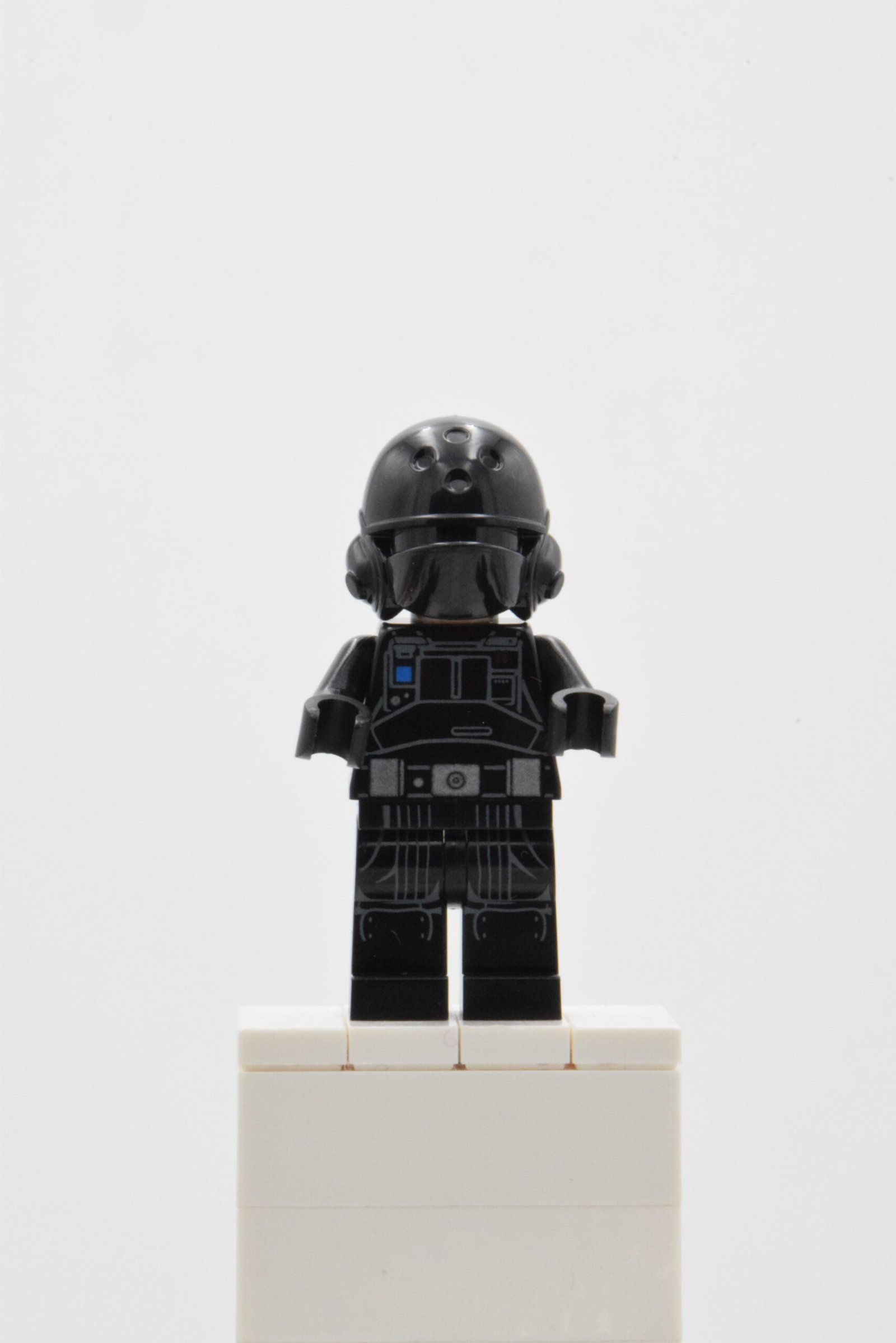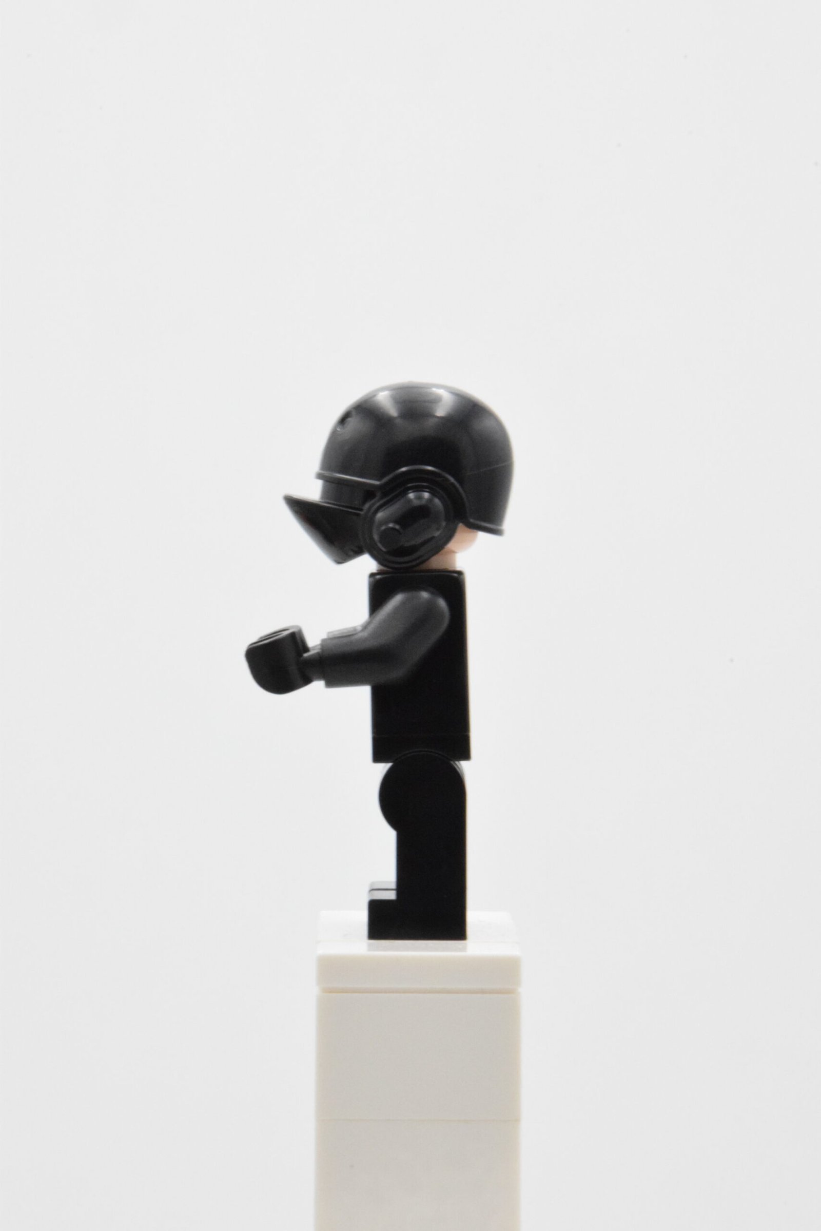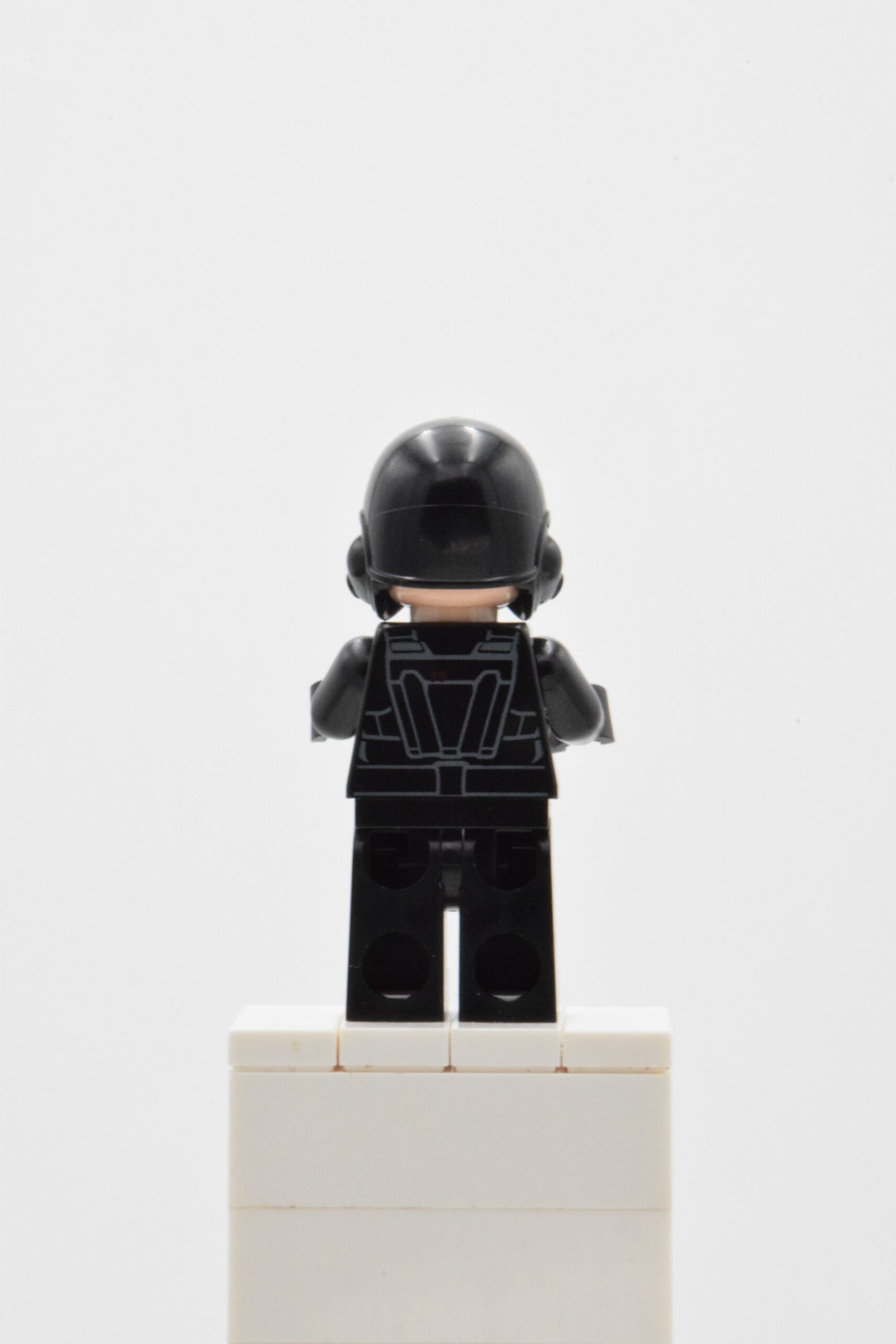 Le design de Imperial Ground Crew sur sw0785 se distingue par une lecture visuelle très nette, avec un casque noir spécifique de ground crew, un torse imprimé de combinaison de technicien impérial, des jambes noires décorées de genouillères impériales et un visage simple face avec micro-casque qui renforce immédiatement son rôle de personnel de hangar. L’ensemble offre un rendu cohérentpropre et crédible, particulièrement efficace pour une exposition ou une scène de préparation d’appareil impérial.