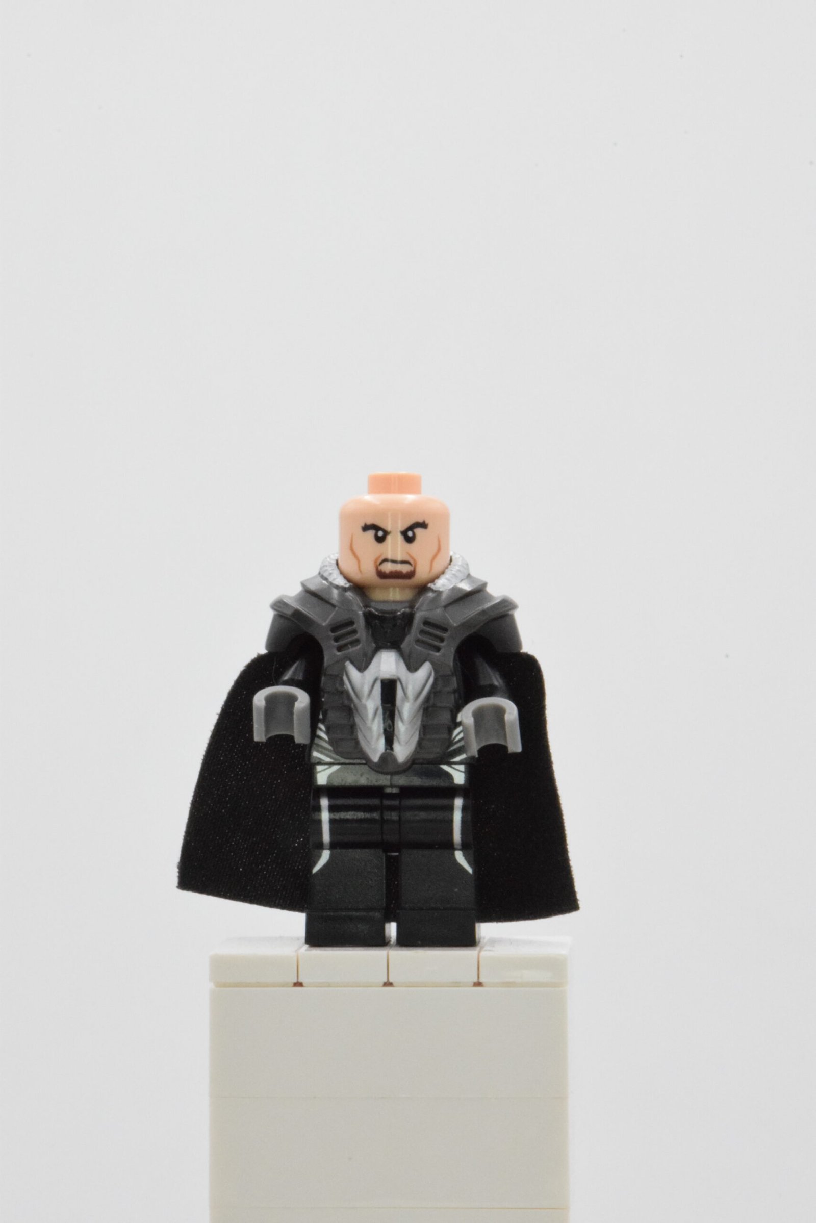 Le design de cette minifigurine se distingue par un haut niveau de détail. Le torse est richement imprimé, mettant en valeur l’armure technologique aux lignes anguleuses et aux motifs métalliques, parfaitement fidèles à l’esthétique du personnage. Les jambes prolongent cette impression avec une continuité graphique soignée, tandis que la cape noire ajoute une dimension dramatique et renforce l’allure menaçante de General Zod. Le casque moulé spécifique complète l’ensemble et accentue son rôle de chef militaire impitoyable.