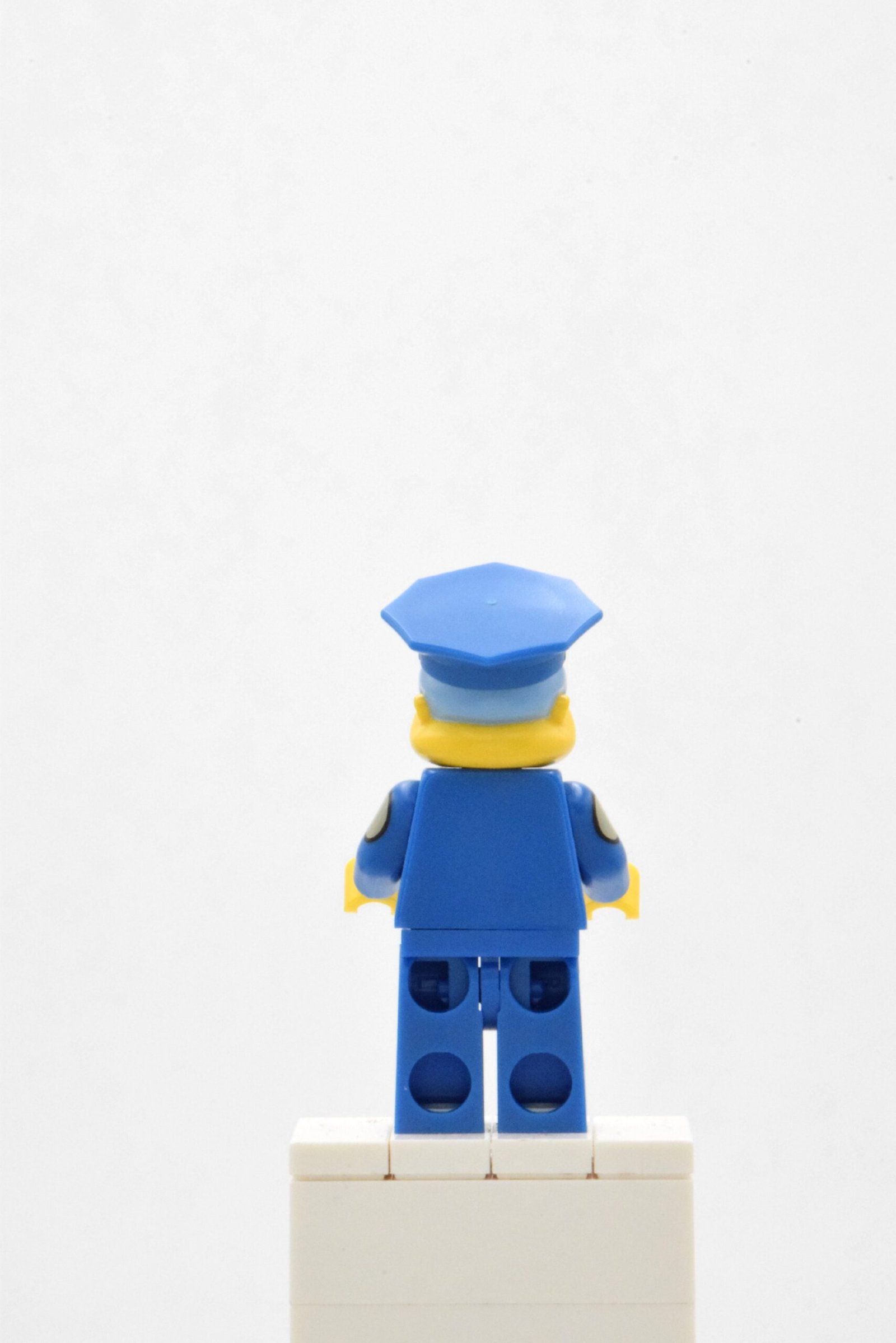 La tête moulée est l’un des éléments clés de cette minifig : le visage rond, le nez large, l’expression légèrement confuse et les joues gonflées sont parfaitement fidèles au modèle animé. Son chapeau de police moulé, bleu avec écusson doré, complète son apparence emblématique.