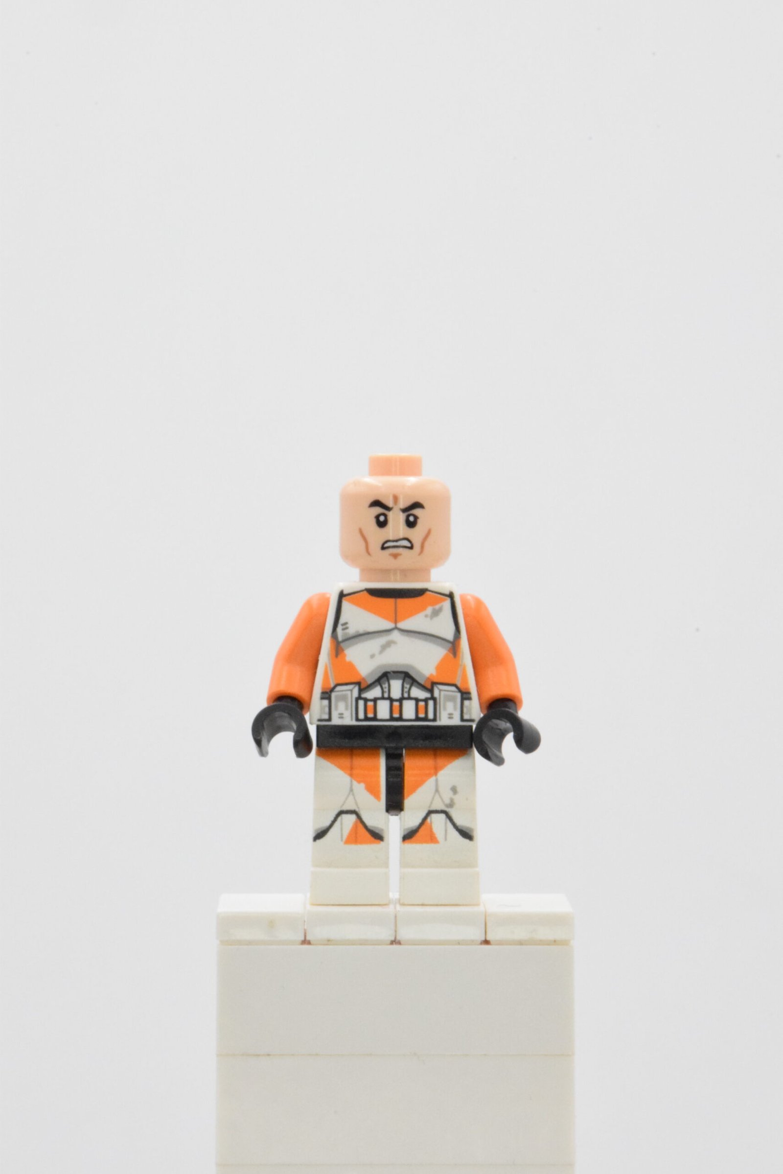 Le design de cette minifigurine met en avant une armure Phase II richement imprimée. Les détails du casque, du torse et des jambes sont précis et équilibrés, reflétant fidèlement l’équipement standard des soldats du 212th Attack Battalion. Les touches orange contrastent efficacement avec le blanc de l’armure, renforçant l’identité de cette unité spécialisée et lui donnant une présence marquée parmi d’autres clones. L’expression faciale alternative permet également de varier les mises en scène et d’ajouter du réalisme.