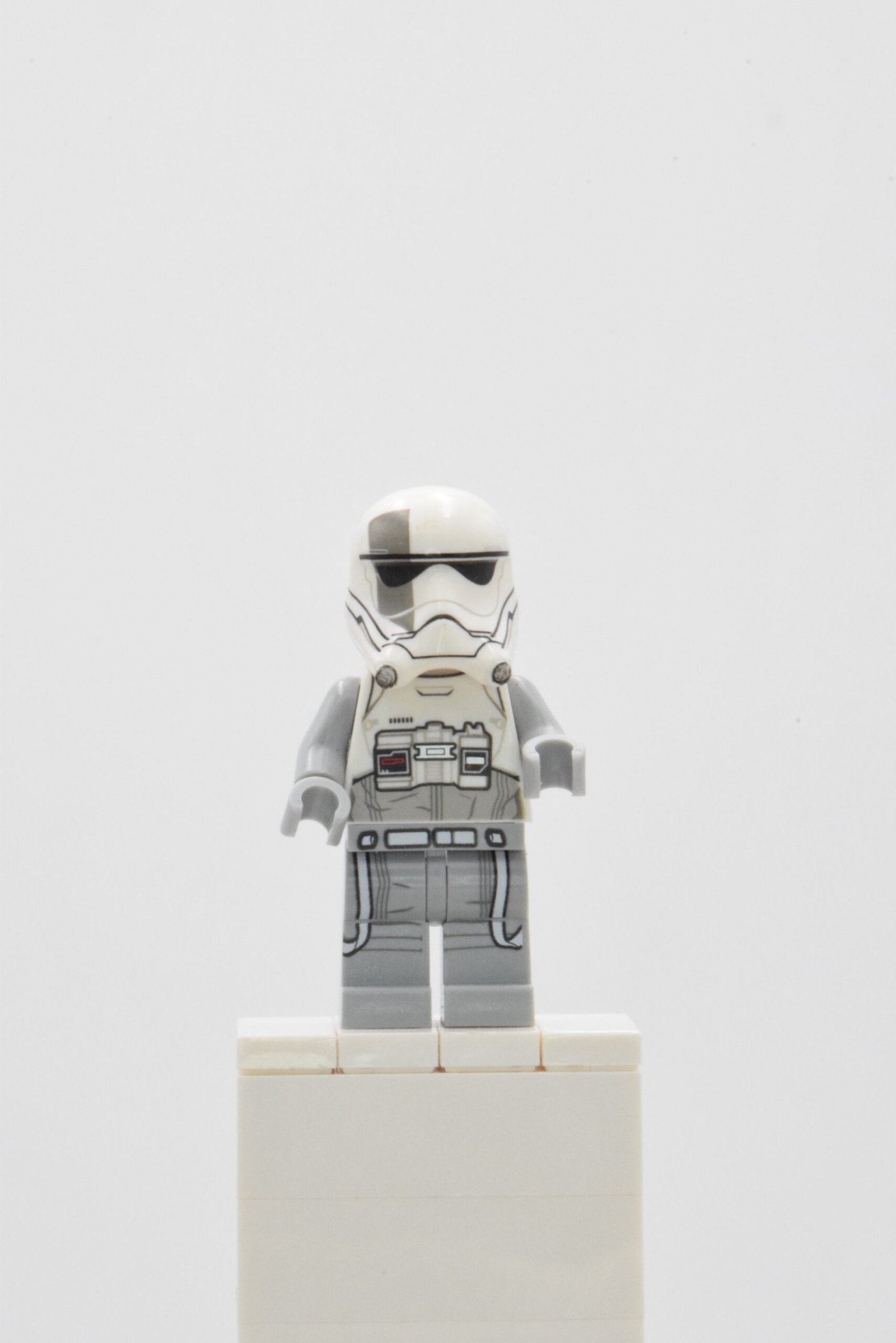 Le design de cette minifigurine se distingue par une tenue sombre et fonctionnelle, parfaitement adaptée à son rôle de pilote. Le torse et les jambes présentent des impressions précises évoquant une combinaison renforcée, conçue pour résister aux conditions extrêmes des champs de bataille. Le casque spécifique, avec ses lignes anguleuses et son style moderne, rappelle immédiatement l’esthétique du Premier Ordre et différencie clairement ce pilote des Stormtroopers classiques. L’ensemble offre un rendu réaliste et cohérent, fidèle à l’univers Star Wars.